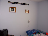 Tuesday, we moved Braden out and Yvonne painted the baseboards and followed up with the ceiling that night after I got back from Elders Quorum visits. Wednesday, Yvonne painted the walls and we moved Braden back in. It's kind of hard to see his color, but it looks really good.